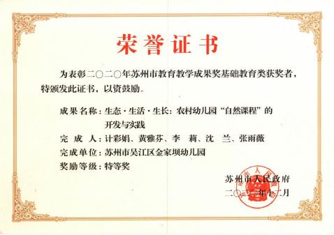 两年来,成员教师分别荣获江苏省特级教师、正高级教师、江苏省“333高层次人才培养工程”第三层次培养对象、江苏省教育科研先进个人,姑苏教育领军人才,“苏州市双十佳教师”“吴江区最美教师”、“吴江区模范教师”“吴江区师德标兵”、“吴江好人”等荣誉称号,获评苏州市教科院优质课评比二等奖等。44名在园教师,两年新增区级以上骨干教师19人。